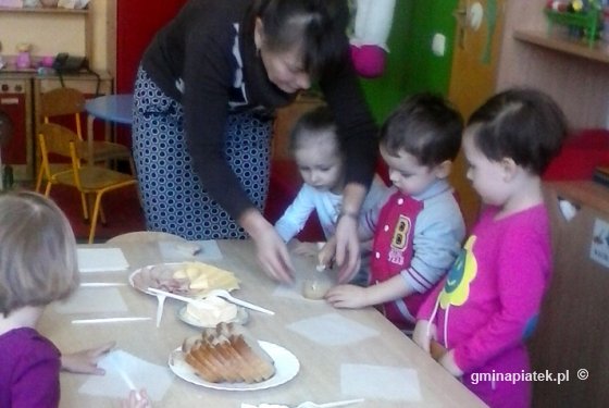 AktualnościW celu zachęcania dzieci do samodzielności, rozwijania praktycznych umiejętności oraz utrwalania zasad zdrowego odżywiania się, raz w tygodniu w trzech grupach Gminnego Przedszkola im. Jana Pawła II w Piątku (Misie, Żabki, Biedronki) śniadania odbywają się w formie „szwedzkiego stołu”. Z przygotowanego pieczywa, warzyw, serów, wędlin i jajek przedszkolaki samodzielnie wykonują kanapki.Same decydują o tym, co chcą zjeść i co najważniejsze własnoręcznie układają na kanapce wybrane składniki. Dzieci są zachwycone tym sposobem podawania śniadania. Kanapki sporządzone według własnego pomysłu bardzo im smakują. Nawet „niejadki” zjadają swoją porcję z wielkim apetytem.