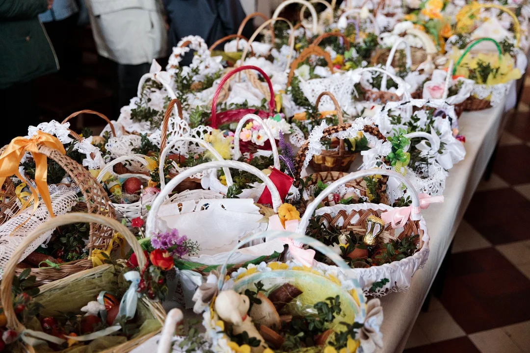 Koszyczki to nie tylko jedzenie, ale także biała serwetka i zielone gałązki. W tym przypadku biel znaczyła niewinność, bycie bez grzechu, a zieleń przyrodę budzącą się na nowo do życia. Od samego początku do dziś, używano tu głównie roślin wiecznie zielonych takich jak bukszpan.