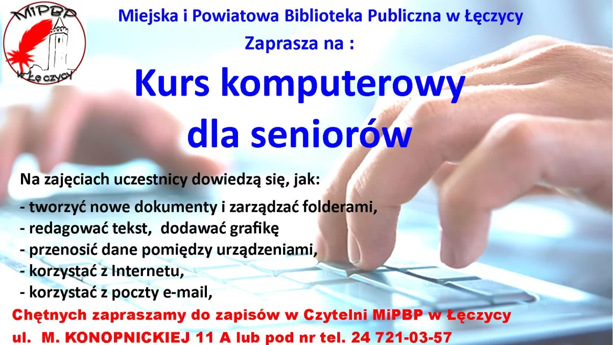 Miejska i Powiatowa Biblioteka Publiczna w Łęczycy zaprasza na : Kurs komputerowy dla seniorów