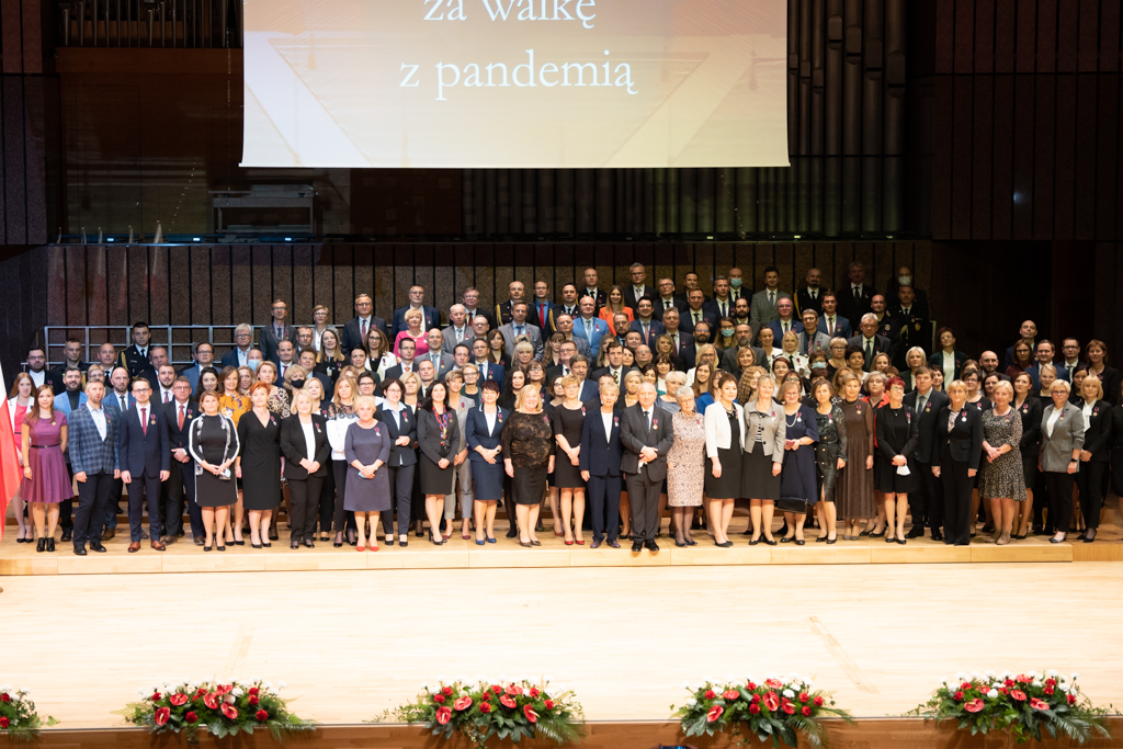 Odznaczenia wręczali wojewoda łódzki Tobiasz Bocheński oraz marszałek województwa łódzkiego Grzegorz Schreiber, bo wśród nagrodzonych jest wielu pracowników z jednostek podległych samorządowi województwa łódzkiego. Stali na straży tego, aby w jak największym stopniu uchronić nas przed rozprzestrzenianiem się wirusa SARS-CoV-2; dbali o to, by nasze placówki medyczne były dobrze przygotowane i wyposażone, a tym samym, by można było w nich skutecznie leczyć chorych na Covid-19.