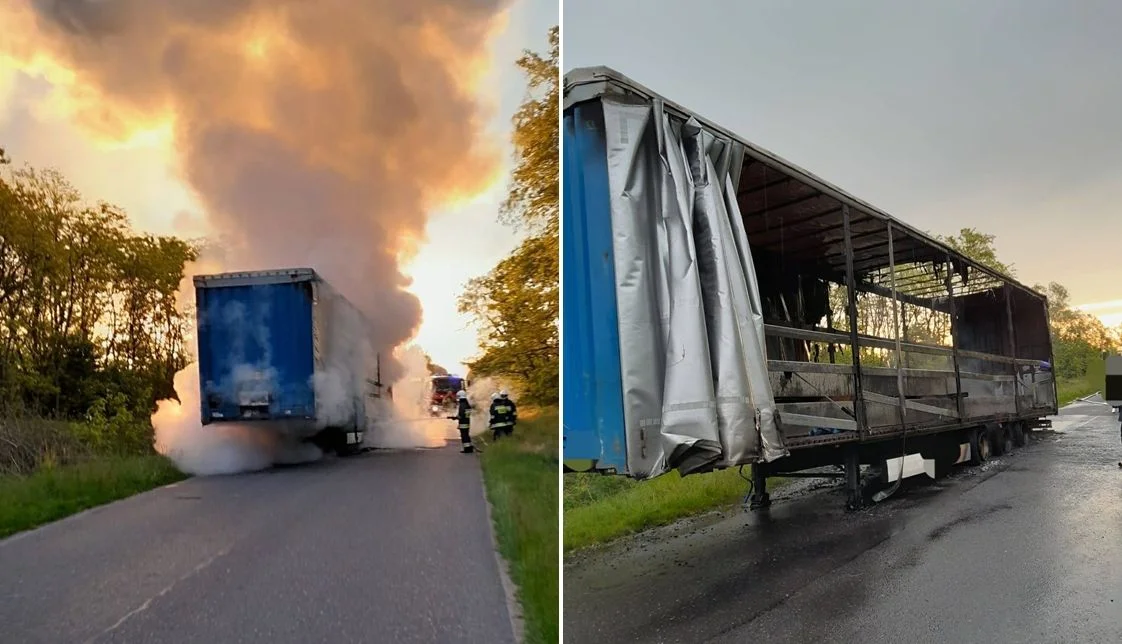 W miniony poniedziałek (26 maja) o godz. 4.53 do służb wpłynęło zgłoszenie z miejscowości Grabów (powiat łęczycki). Przy ul. Dąbskiej w płomieniach stanęła naczepa tira.