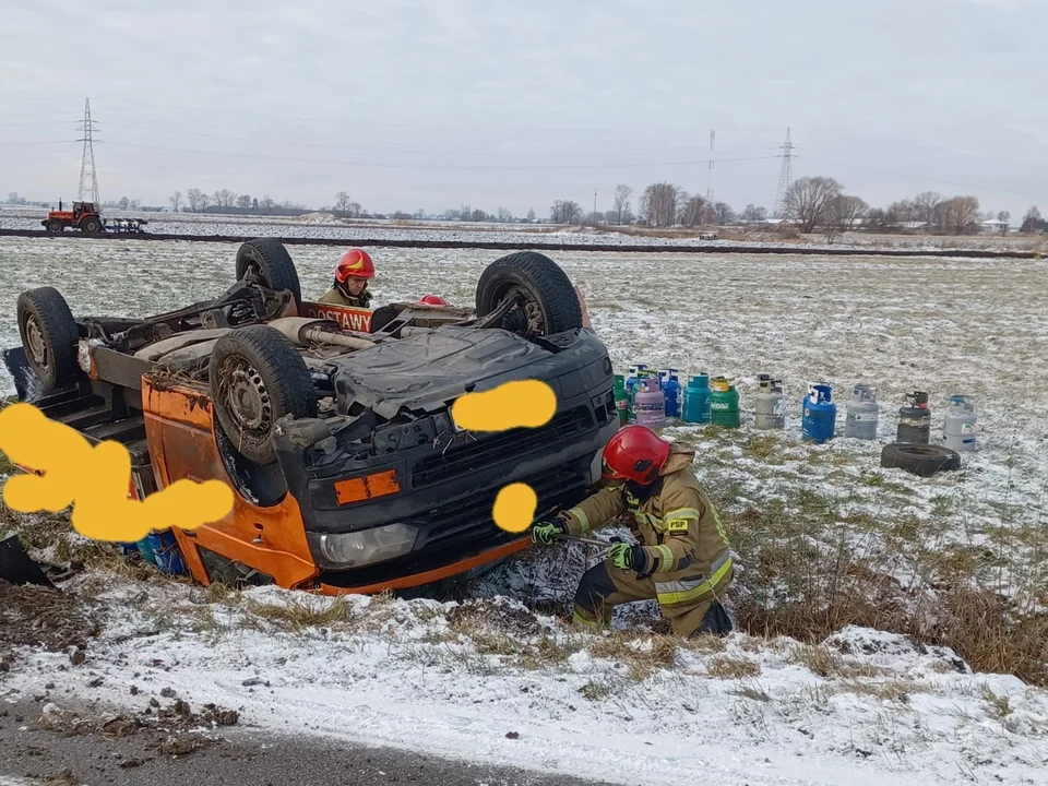 21 grudnia o godz. 11.00 do Stanowiska Kierowania Komendanta Powiatowego Państwowej Straży Pożarnej w Łęczycy wpłynęło zgłoszenie o dachowaniu samochodu dostawczego przewożącego butle propan-butan o pojemności 11 kg. Zdarzenie miało miejsce w miejscowości Leszcze pod Łęczycą.