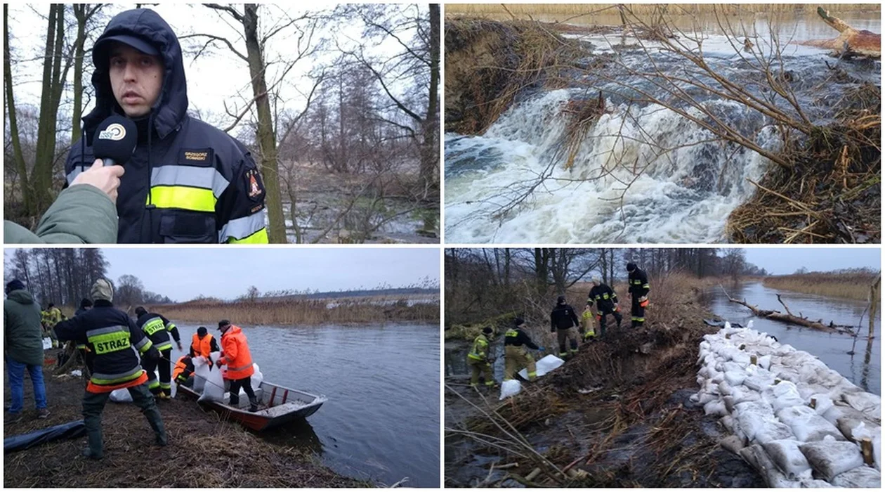 - Działania straży pożarnej polegały na zabezpieczeniu miejsca zdarzenia, dostarczaniu worków z piaskiem za pomocą łodzi płaskodennych, wzmacnianiu wału przeciwpowodziowego na długości ok. 8m poprzez układanie worków z piaskiem, "palikowaniu" i "foliowaniu" – wylicza asp. Grzegorz Sobiński, oficer prasowy KP PSP w Łęczycy.