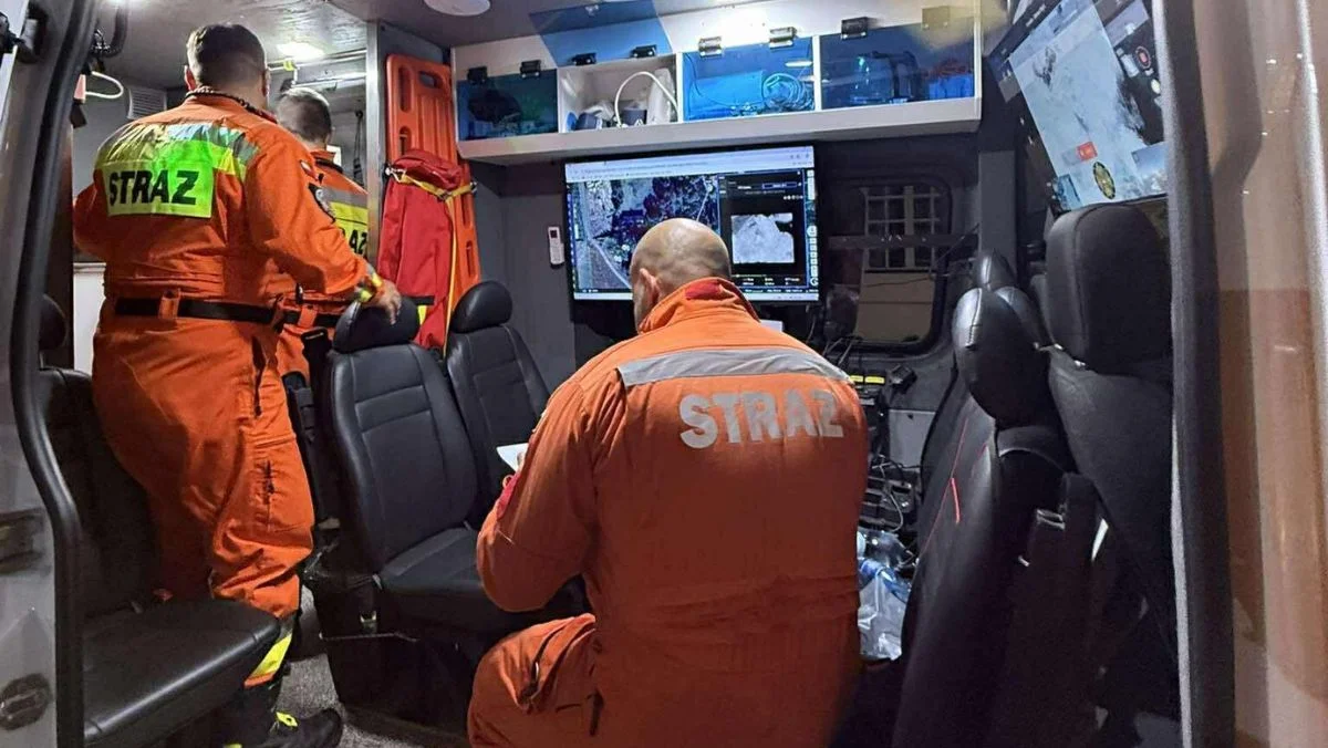 Obraz z drona był na bieżąco obserwowany w samochodzie. Na podstawie temperatury wyznaczano miejsca w których może znajdować się poszukiwany mężczyzna.