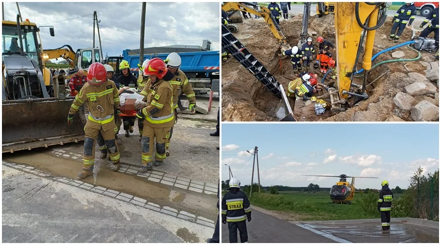 - Działania straży pożarnej polegały na zabezpieczeniu lądowania Lotniczego Pogotowia Ratunkowego, udzieleniu osobie poszkodowanej kwalifikowanej pierwszej pomocy, wypompowaniu wody oraz odkopaniu poszkodowanego z zasypanego wykopu – informuje asp. Grzegorz Sobiński z Komendy Powiatowej Państwowej Straży Pożarnej w Łęczycy.