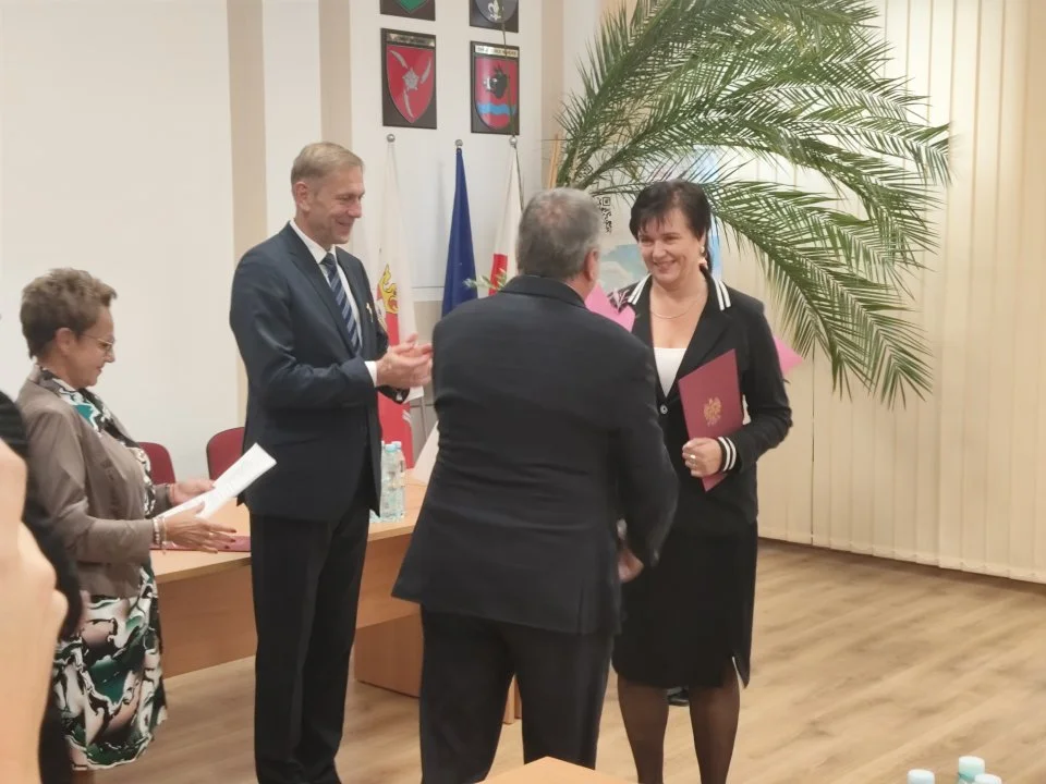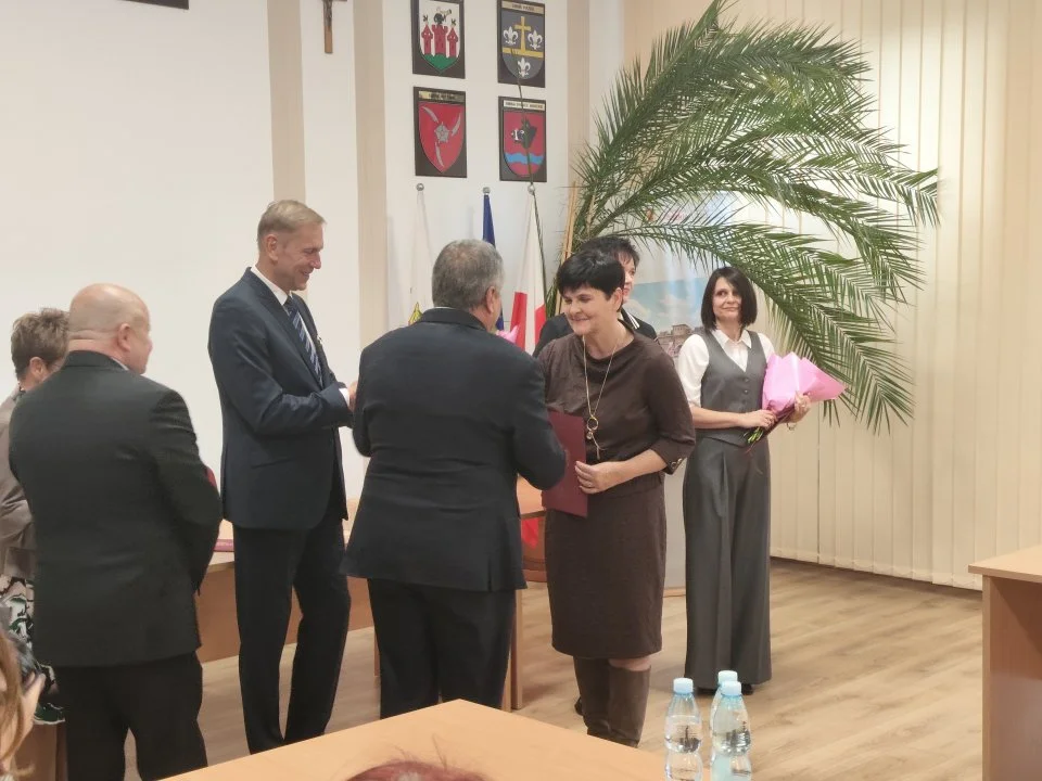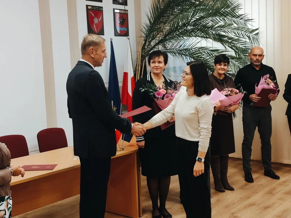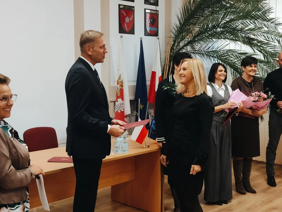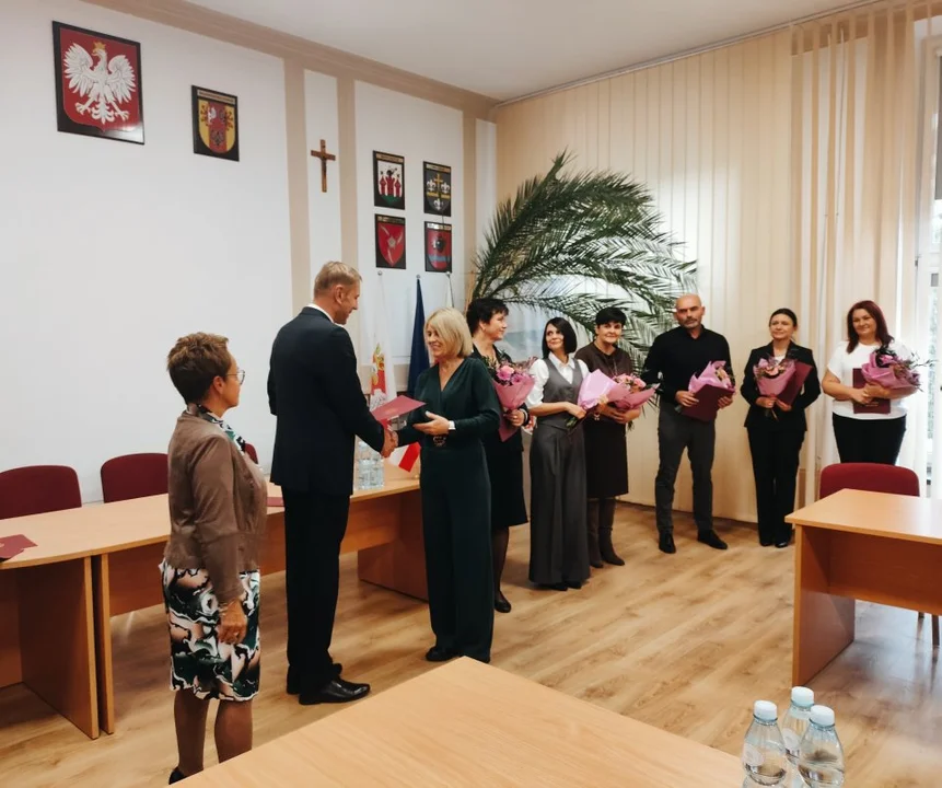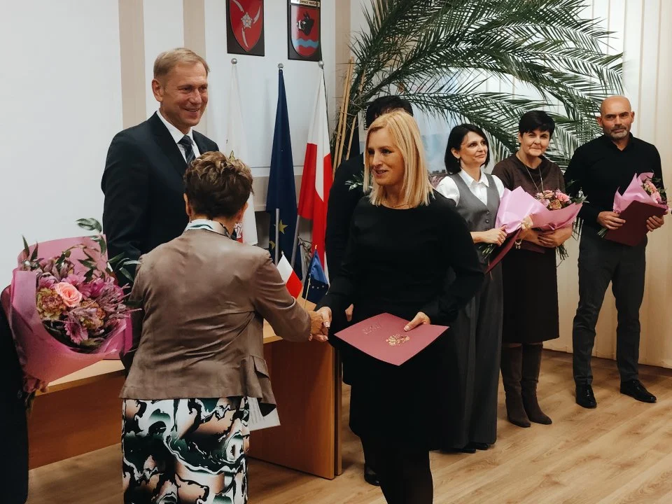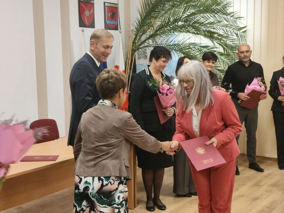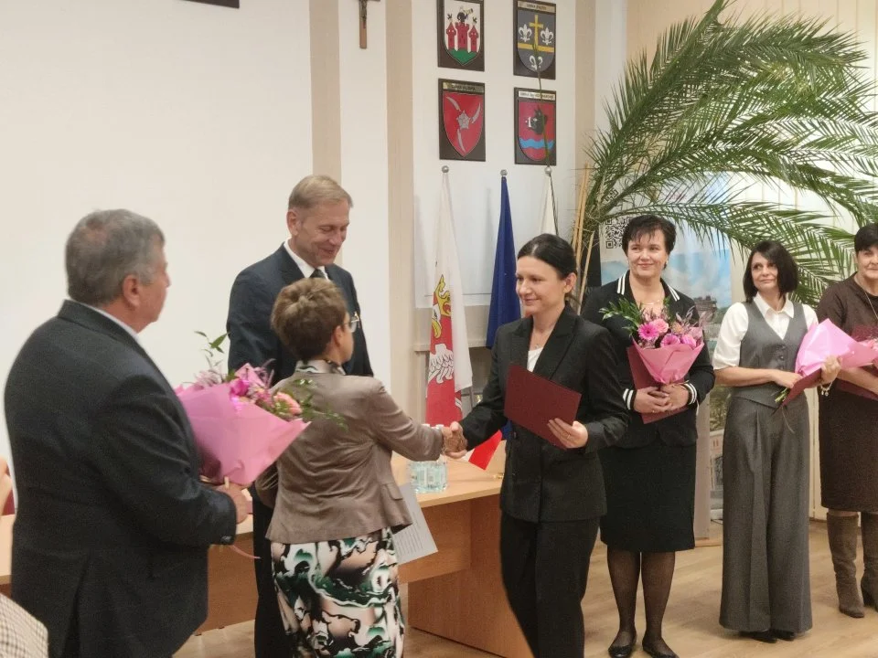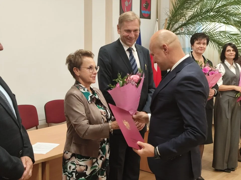 Gratulacje nagrodzonym nauczycielom złożyli również członkowie Zarządu Powiatu Łęczyckiego.