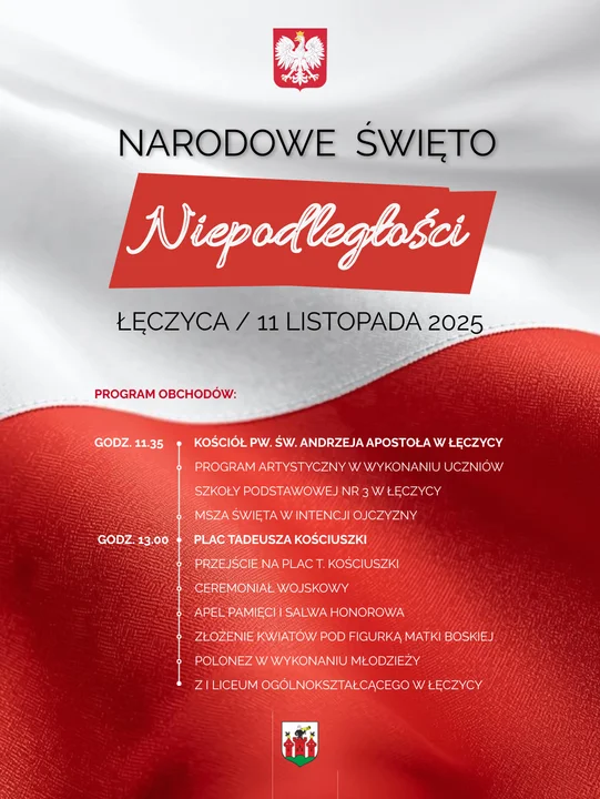 Uczniowie Szkoły Podstawowej nr 3 w Łęczycy przedstawią program patriotyczny, a tuż po nim odbędzie się Msza Święta w intencji Ojczyzny.