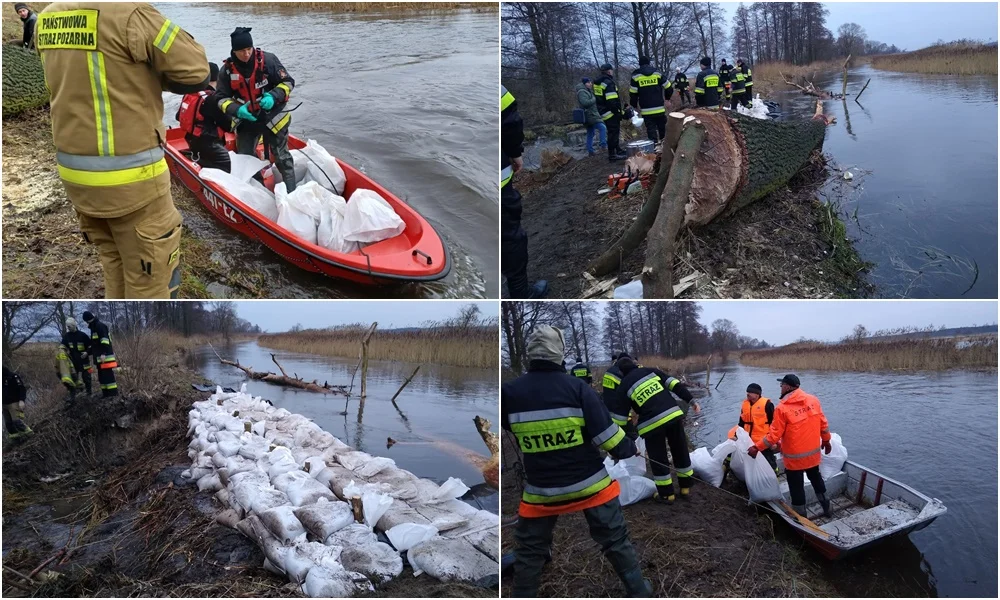 Działania straży ciągle trwają. Strażacy wzmacniają wał na długości około ośmiu metrów przy pomocy worków z piaskiem, które niestety trzeba transportować rzeką. Z tego powodu na miejsce zadysponowano także łódkę z KP PSP w Tomaszowie Mazowieckim.