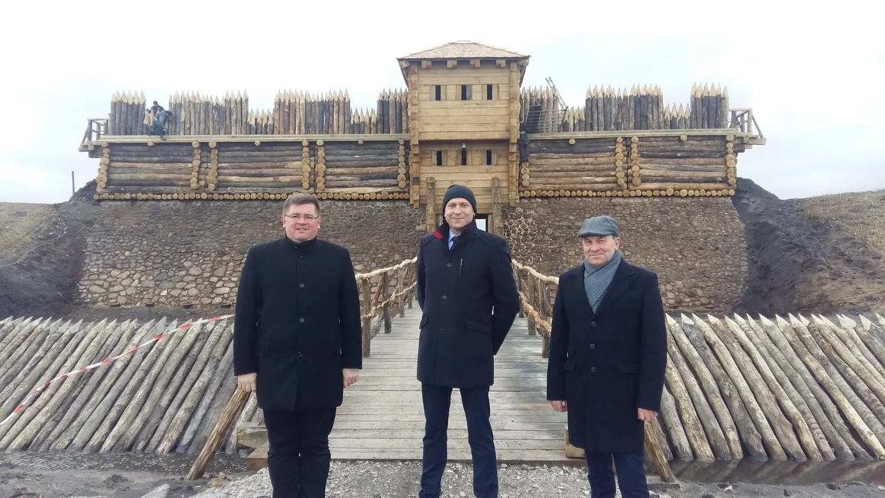 Następnym punktem jego wizyty było odwiedzenie rekonstruowanego właśnie grodziska w Tumie.