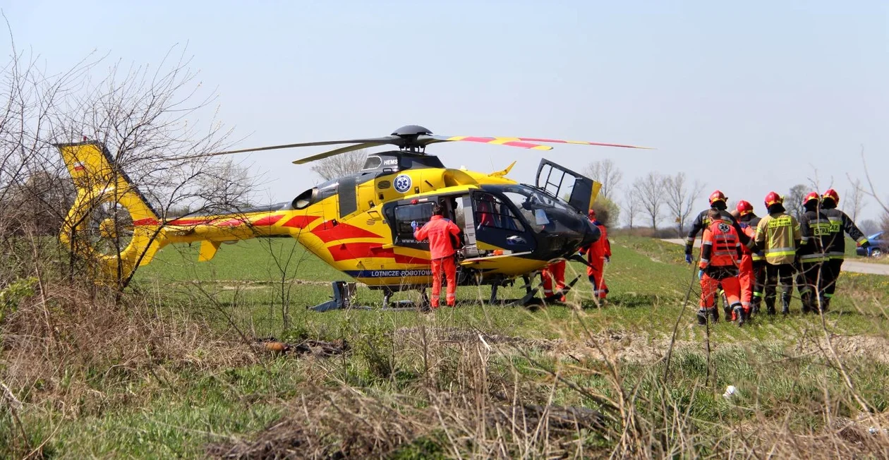 Kobieta została przejechana przez wózek widłowy. Odniosła bardzo poważne obrażenia. Została zabrana do szpitala przez Lotnicze Pogotowie Ratunkowe.